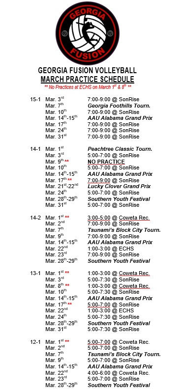 2026 gEORGIA FUSION TOURNAMENT SCHEDULE